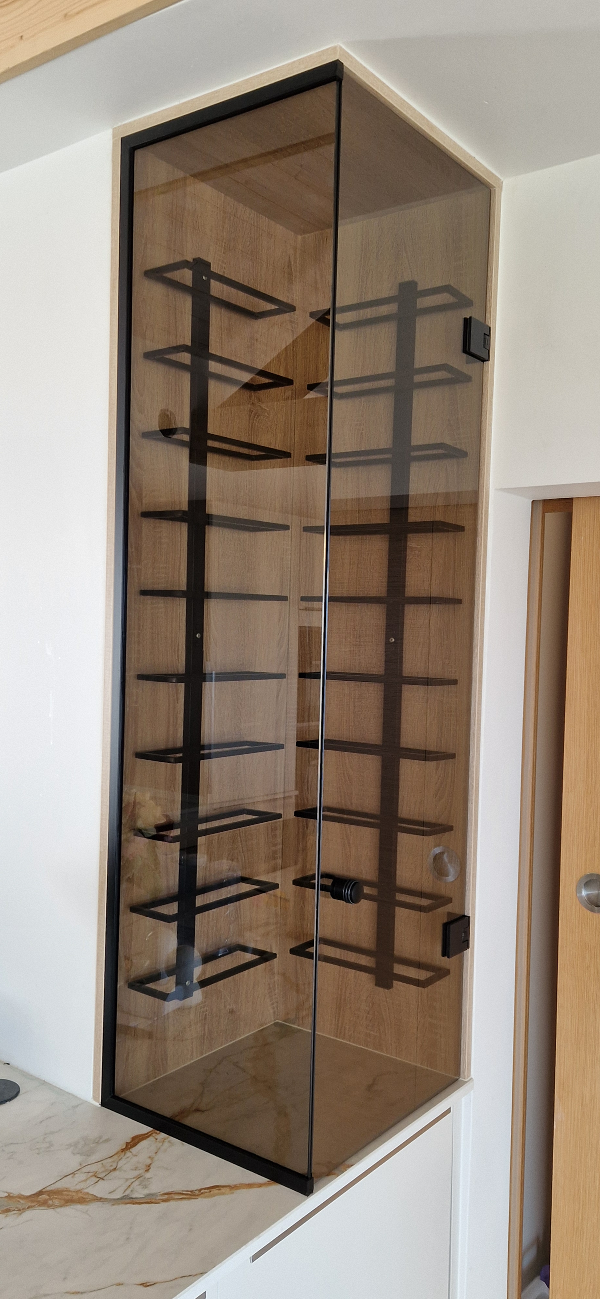 Pose d'une cave à vin en verres parsol bronze