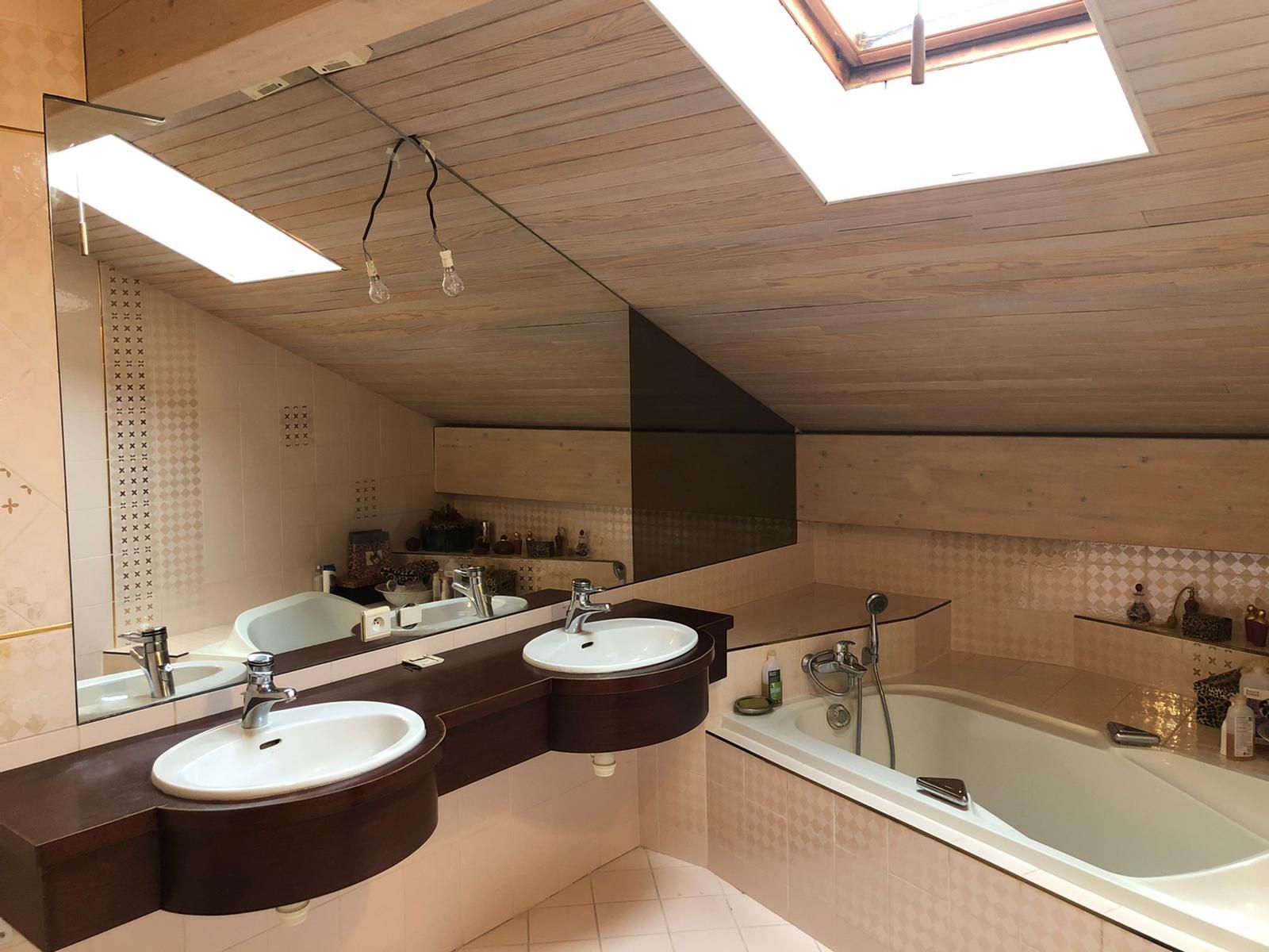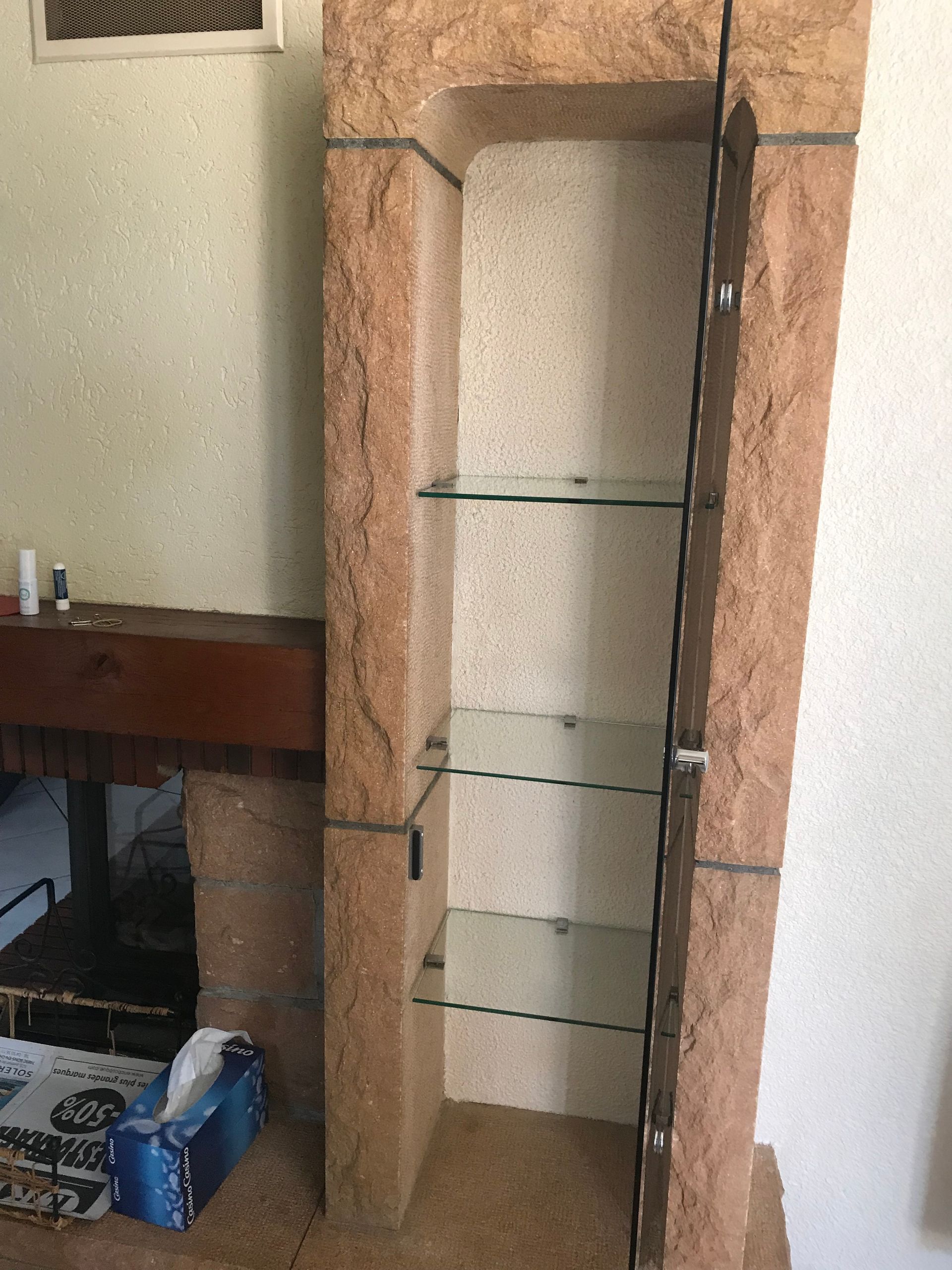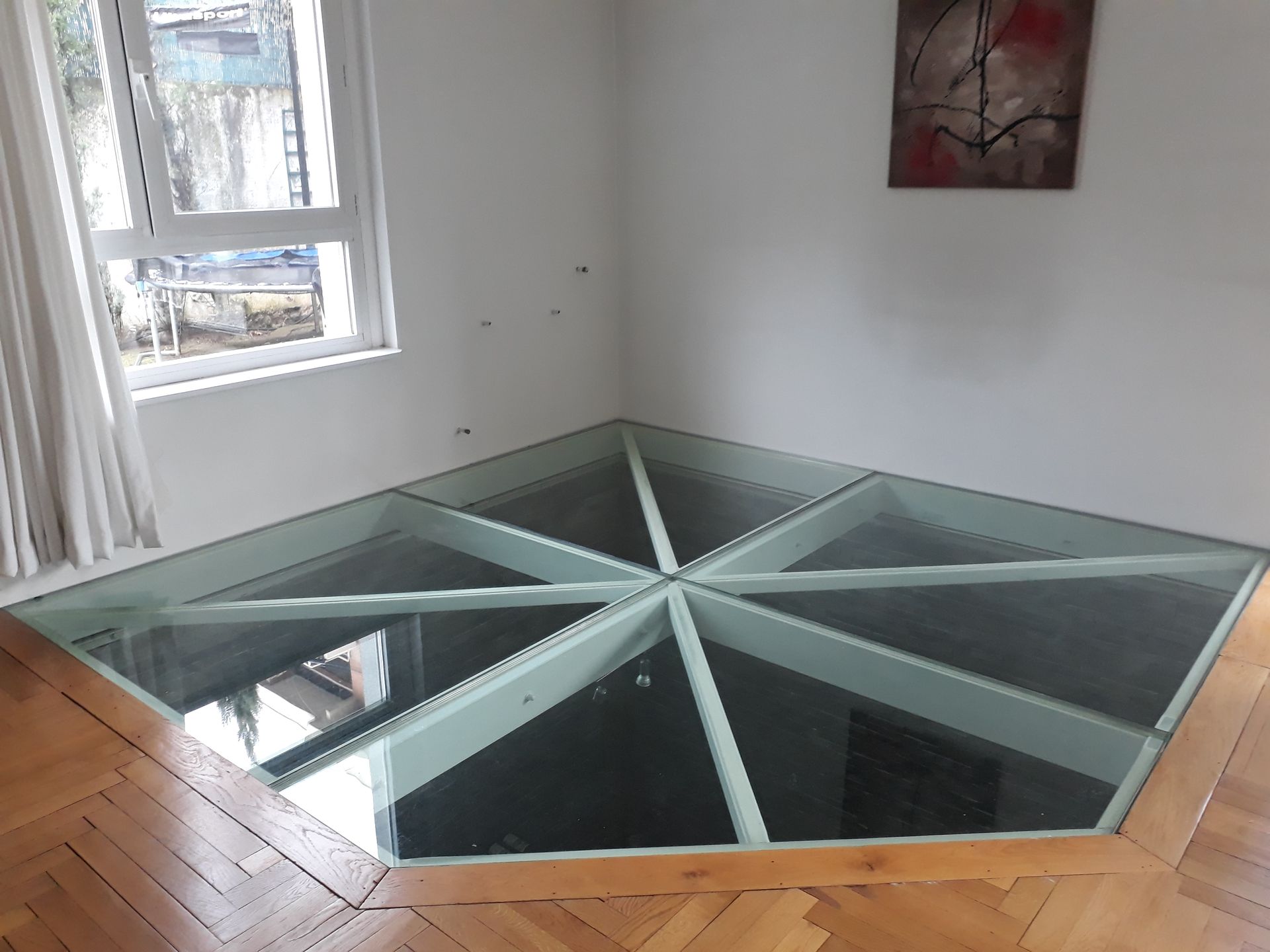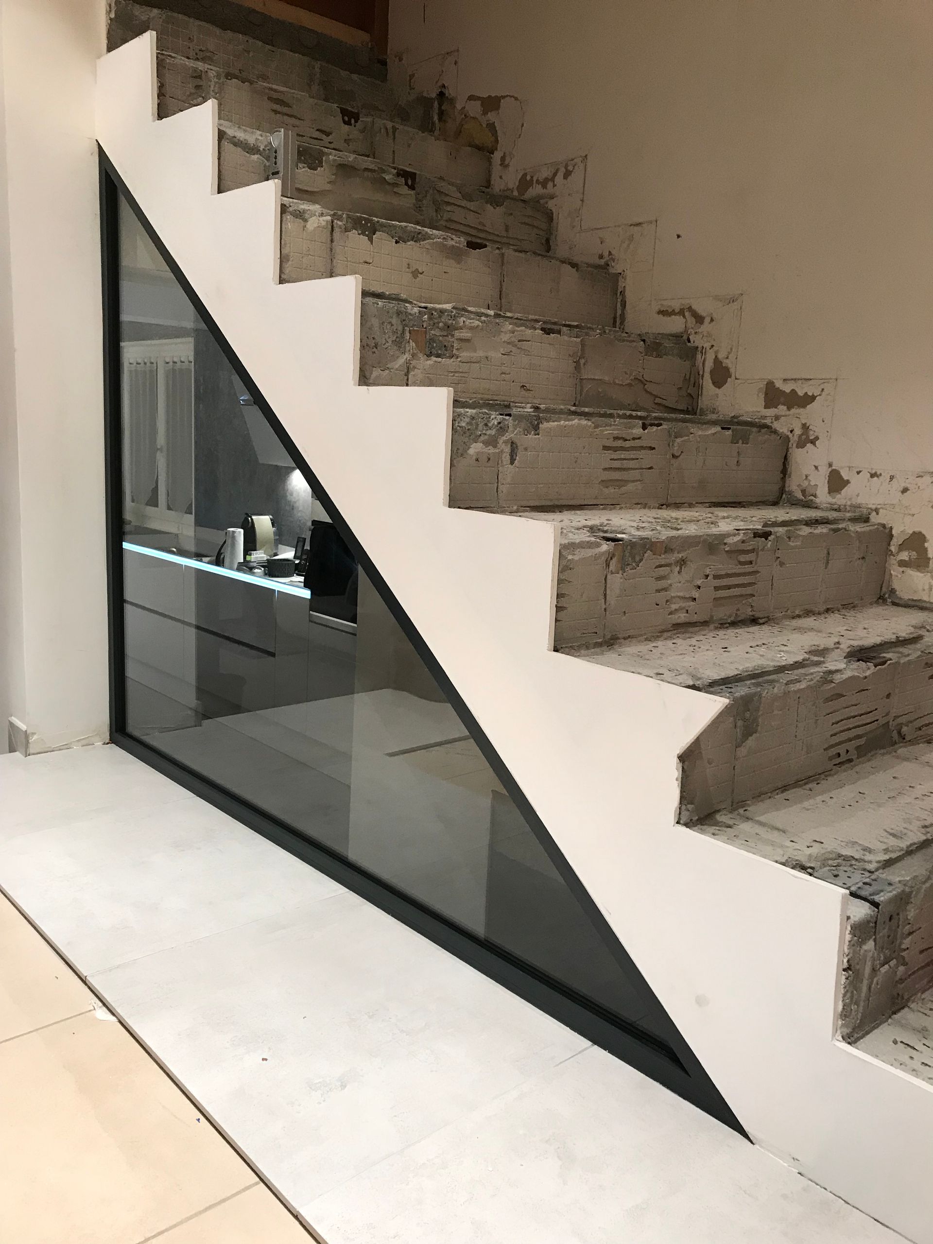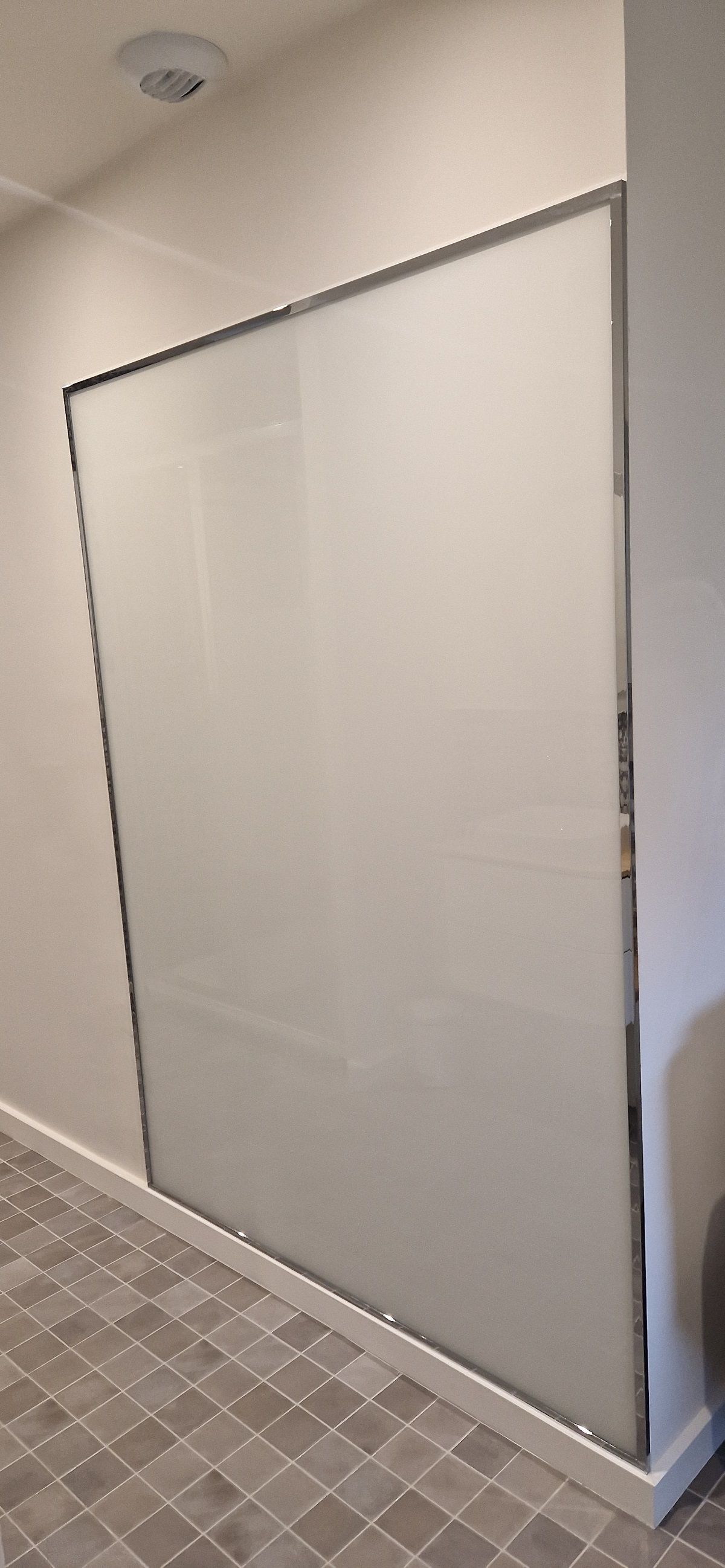 Pose d'un lacobel blanc avec des profils chromés brillants sur les quatre cotés.